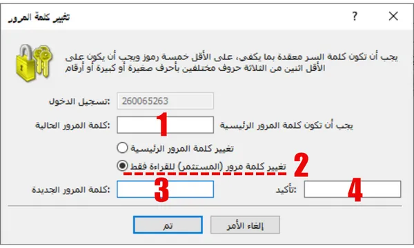 - تغيير: حدد "تغيير كلمة مرور المستثمر (للقراءة فقط)".