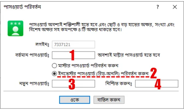 - বিকল্প নির্বাচন করুন: "ইনভেস্টর পাসওয়ার্ড (রিড-অনলি) পরিবর্তন করুন" বিকল্পটি ক্লিক করুন।