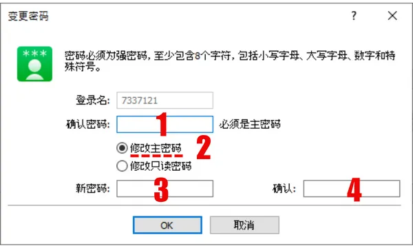 A2: 不会。主密码和观摩密码是独立的。变更主密码不会对您之前设定的观摩密码产生任何影响。Q3: 为什么我点击「OK」后没有反应或出现错误?