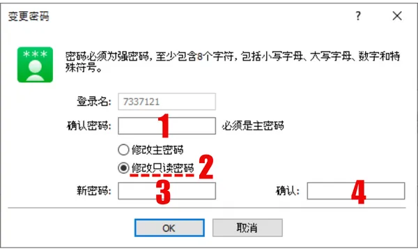 - 确认: 再次输入新的“只读密码”以确认无误。
