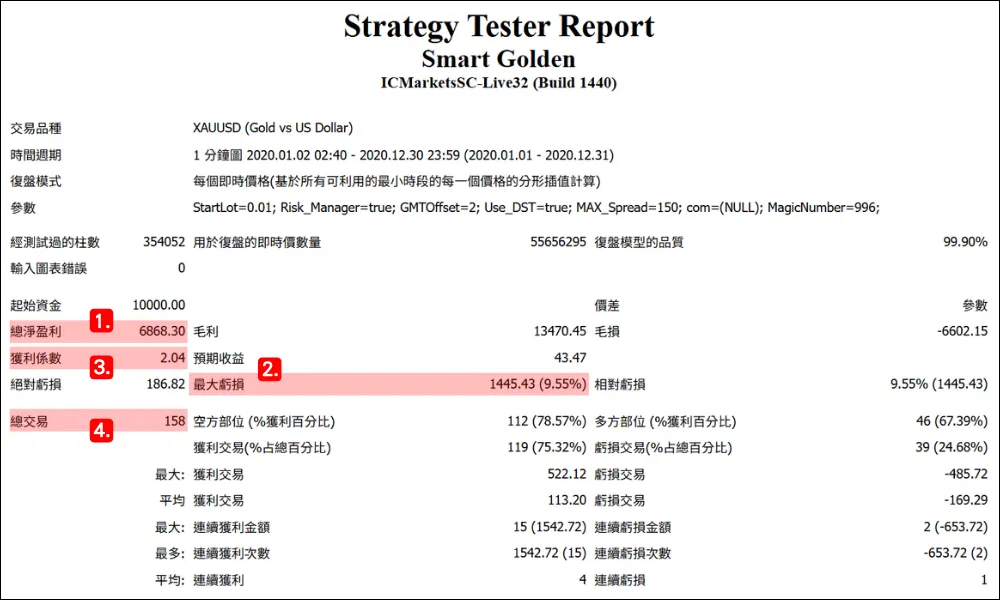 看懂这份报告很重要,因为它可以帮助您初步判断这个 EA 策略在过去的表现怎么样,有哪些潜在的风险 。