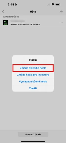 Návod na změnu hlavního hesla v MT4 pro iOS (testováno na iPhone/iPad)