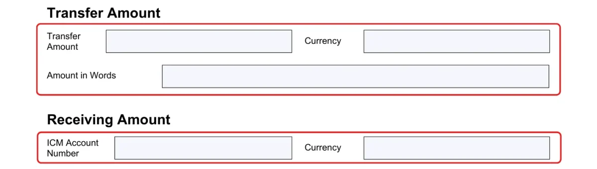 - Receiving ICM Account: Nummeret på den personlige handelskonto, der skal modtage pengene.