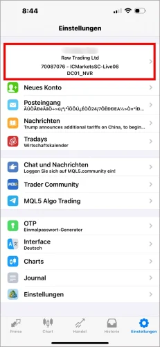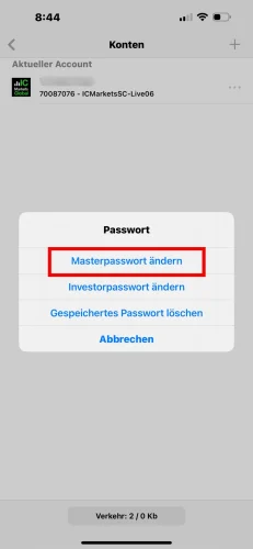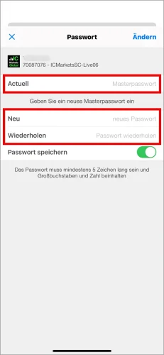 Anleitung zum Ändern des Handelspassworts (Masterpasswort) für MT4 auf iOS (getestet auf iPhone/iPad)