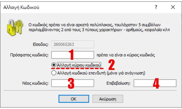 Αυτό είναι το πιο κρίσιμο βήμα. Στο παράθυρο «Αλλαγή κωδικού» που εμφανίζεται, ολοκληρώστε τις παρακάτω ενέργειες με τη σειρά:- Τρέχων κωδικός πρόσβασης: Εισαγάγετε τον τρέχοντα, παλιό «Κύριο Κωδικό Πρόσβασης» σας.
