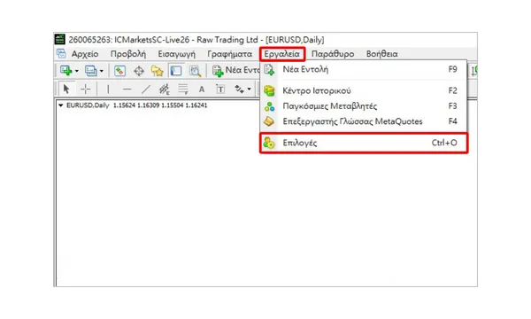 Στη συνέχεια, θα σας καθοδηγήσουμε στη ρύθμισή του στην έκδοση για υπολογιστές του MT4 σε τρία απλά βήματα.