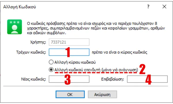 - Νέος κωδικός: Εισαγάγετε τον νέο «Κωδικό Μόνο για ανάγνωση» που θέλετε να ορίσετε.