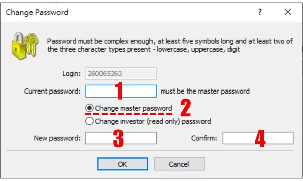 A1: No. This method requires you to know the current master password to make a change. If you have completely forgotten your master password, you need to contact your broker directly and reset it through their official channels (usually the client portal on their website).Q2: Will changing the master password affect the read-only password?