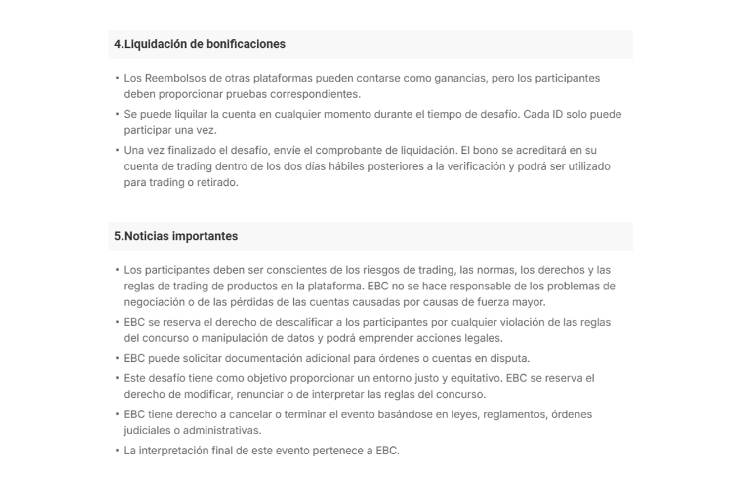 Para que los lectores entiendan el contexto de este experimento, primero debemos divulgar los términos oficiales de la campaña de EBC. Esta es una competición directa con respecto al rendimiento del entorno de trading.