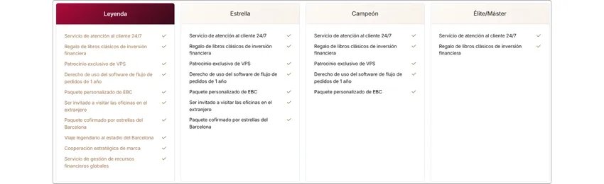 Además de las recompensas en efectivo, EBC proporciona soporte de recursos diferenciado para traders en diferentes etapas. Desde libros educativos básicos hasta actualizaciones de entornos de trading profesionales (VPS, Order Flow), y finalmente la experiencia exclusiva de primer nivel del FC Barcelona, construyendo un ecosistema de crecimiento completo.