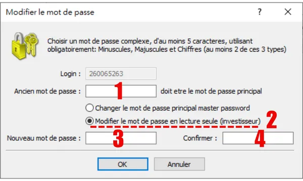 - Modifier : Sélectionnez « Modifier le mot de passe en lecture seule (investisseur) ».