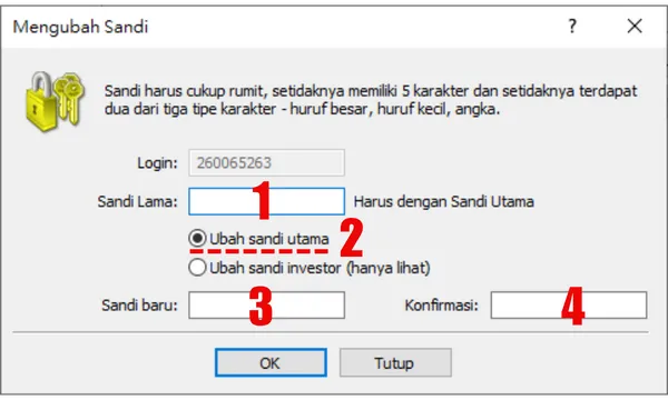 A1: Tidak. Metode ini mengharuskan Anda mengetahui kata sandi utama saat ini untuk melakukan perubahan. Jika Anda benar-benar lupa kata sandi utama Anda, Anda perlu menghubungi broker Anda secara langsung dan mengatur ulang melalui saluran resmi mereka (biasanya portal klien di situs web mereka).Q2: Apakah mengubah kata sandi utama akan memengaruhi kata sandi hanya-baca?