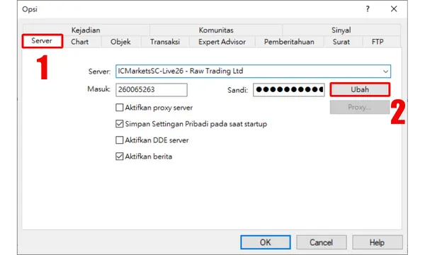 Kata Sandi Utama (Master Password) MetaTrader 4 (MT4) Anda, juga dikenal sebagai "Kata Sandi Trading", adalah kunci ke tingkat otoritas tertinggi untuk akun Anda. Memilikinya berarti memiliki kendali penuh atas akun, termasuk semua operasi seperti melakukan perdagangan dan mengubah pesanan.Untuk melindungi dana Anda, sangat disarankan agar Anda segera mengubah kata sandi utama Anda dalam situasi berikut: