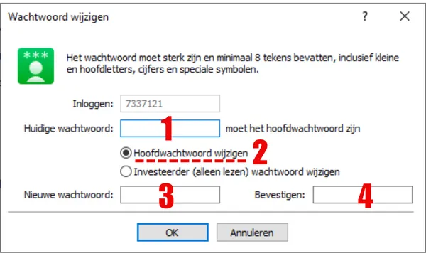 Q2: Heeft het wijzigen van het hoofdwachtwoord invloed op mijn investeerderswachtwoord (alleen-lezen wachtwoord)?
