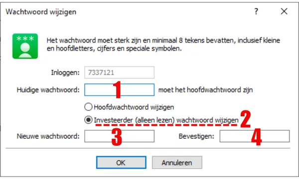 - Selecteer optie: Klik op de optie "Investeerder (alleen lezen) wachtwoord wijzigen".