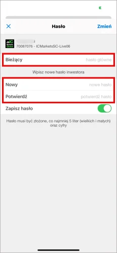 A1: Tak. Hasło jest powiązane z Twoim "kontem handlowym", a nie z urządzeniem. Wszelkie zmiany wprowadzone na jednej platformie (iOS, Android, PC) zostaną zsynchronizowane na wszystkich platformach.P2: Dlaczego nie mogę znaleźć opcji "Zmień Hasło"?
