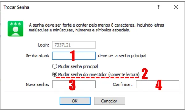 - Selecione a opção: Clique na opção "Mudar senha do investidor (somente leitura)".