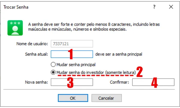 - Selecione a opção: Clique na opção "Mudar senha do investidor (somente leitura)".