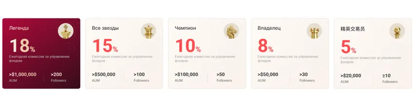 Ваш уровень зависит от AUM и числа подписчиков; высокие уровни открывают ставки вознаграждения за управление до 18%: