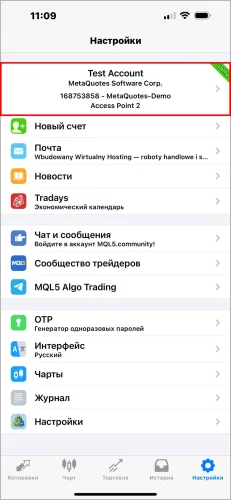 В самом верху страницы настроек вы увидите блок, отображающий ваше имя, номер счета и информацию о сервере. Пожалуйста, коснитесь непосредственно этого блока.