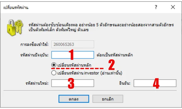 A1: ไม่ได้ วิธีนี้กำหนดให้คุณต้องทราบรหัสผ่านหลักปัจจุบันเพื่อทำการเปลี่ยนแปลง หากคุณลืมรหัสผ่านหลักของคุณโดยสิ้นเชิง คุณต้องติดต่อโบรกเกอร์ของคุณโดยตรงและรีเซ็ตผ่านช่องทางที่เป็นทางการของพวกเขา (โดยปกติคือพอร์ทัลลูกค้าบนเว็บไซต์ของพวกเขา)Q2: การเปลี่ยนรหัสผ่านหลักจะส่งผลต่อรหัสผ่านแบบอ่านอย่างเดียวหรือไม่?