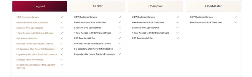 Крім грошових винагород, EBC надає диференційовану ресурсну підтримку трейдерам на різних етапах. Від базових освітніх книг до оновлень професійного торгового середовища (VPS, Order Flow), і нарешті до ексклюзивного досвіду вищого рівня ФК Барселона, будуючи повну екосистему зростання.