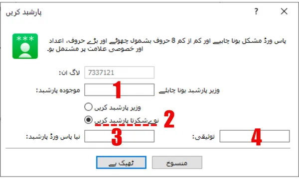 - موجودہ پاس ورڈ: براہ کرم اپنا "ماسٹر پاس ورڈ" درج کریں (وہ جس کے پاس مکمل اختیارات ہیں)۔